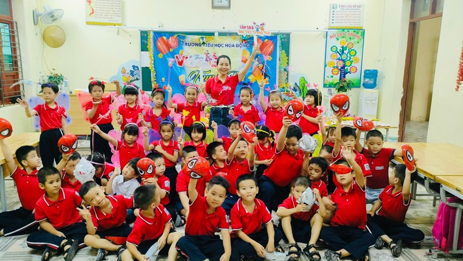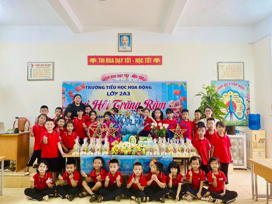 Hôm nay, ngày 28/9/2023, thầy trò trường Tiểu học Hoa Động đã cùng nhau đón Tết trung thu dưới mái trường thân yêu. Tuy thời tiết gặp khó khăn nhưng không khí Trung Thu đã ngập tràn khắp các lớp học. Trong các lớp học, các em được các thầy cô hướng dẫn làm đèn lồng, vẽ tranh chủ đề trung thu để trang trí lớp học. Dọc khắp hành lang, trên các cánh cửa lớp học và cả trong lớp học đều trở nên lung linh hơn nhờ những chiếc đèn lồng, đèn ông sao nhiều màu sắc, mặt nạ chú tễu vui nhộn, hình ảnh cung trăng, chú Cuội, chị Hằng,…