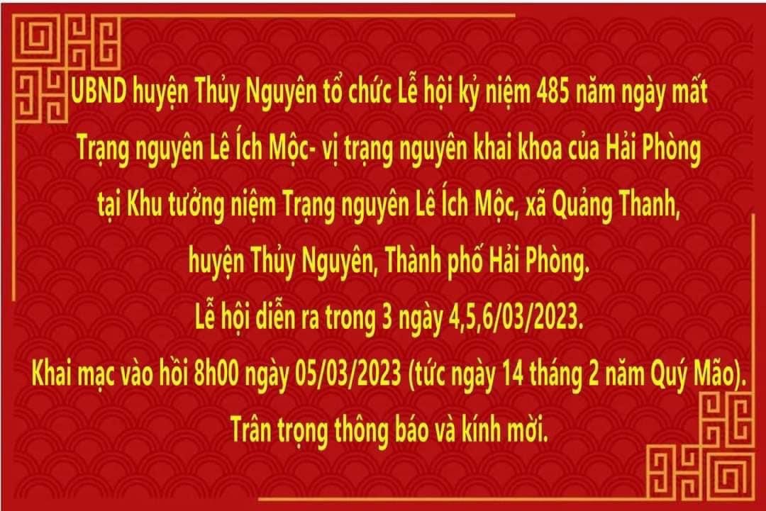 Địa điểm: Tại Khu tưởng niệm Trạng nguyên Lê Ích Mộc, xã Quảng Thanh, huyện Thủy Nguyên, thành phố Hải Phòng.