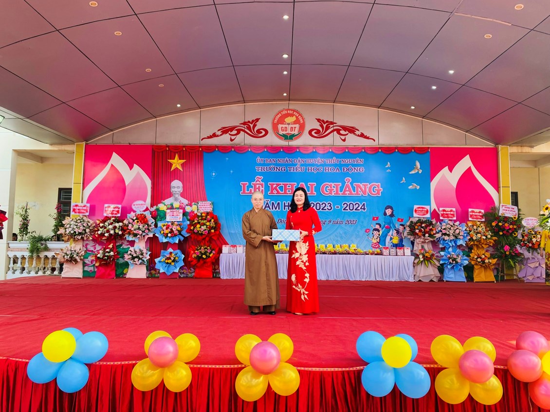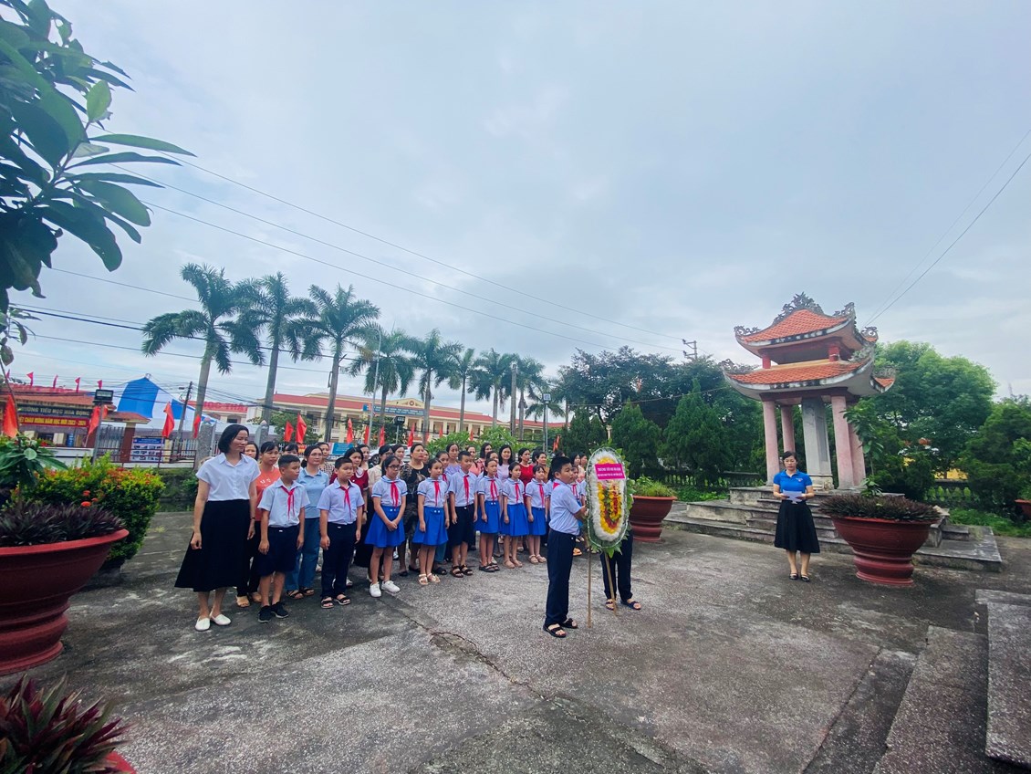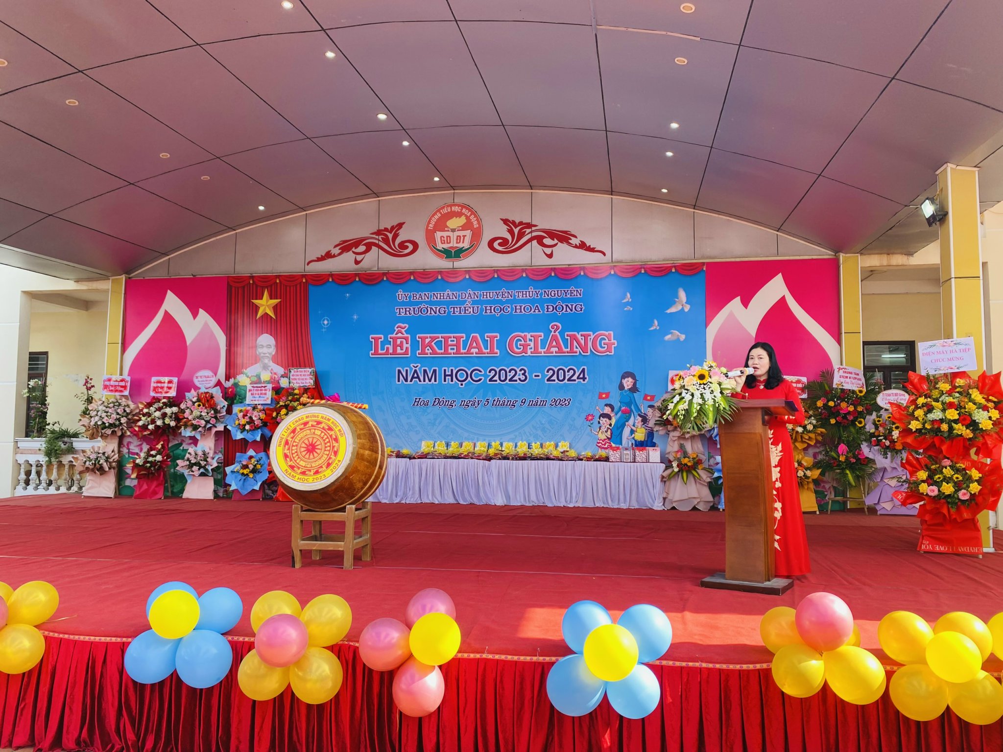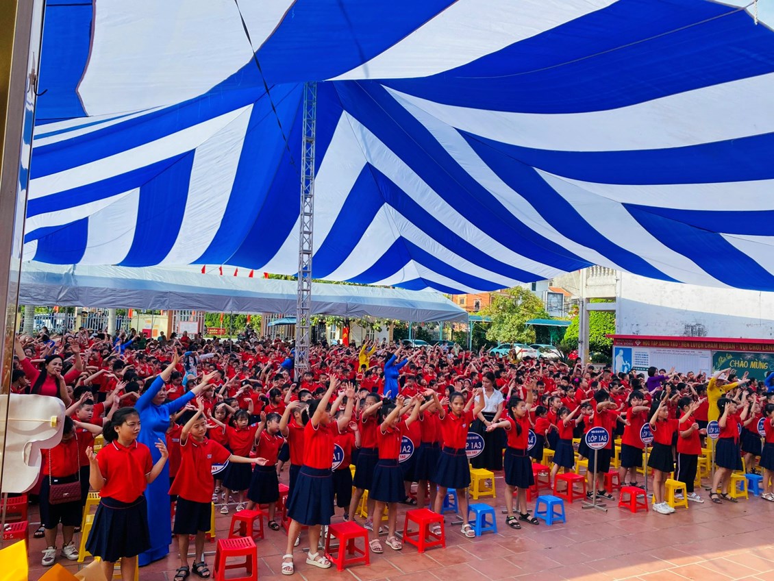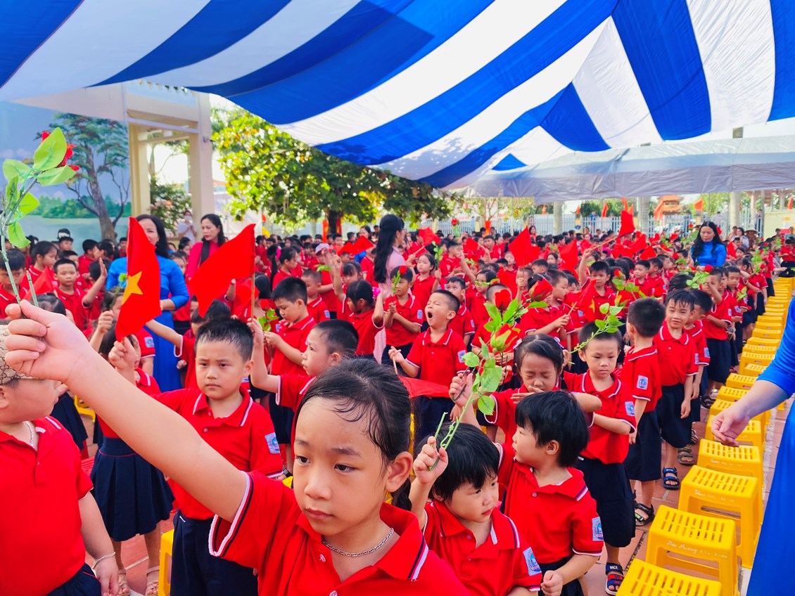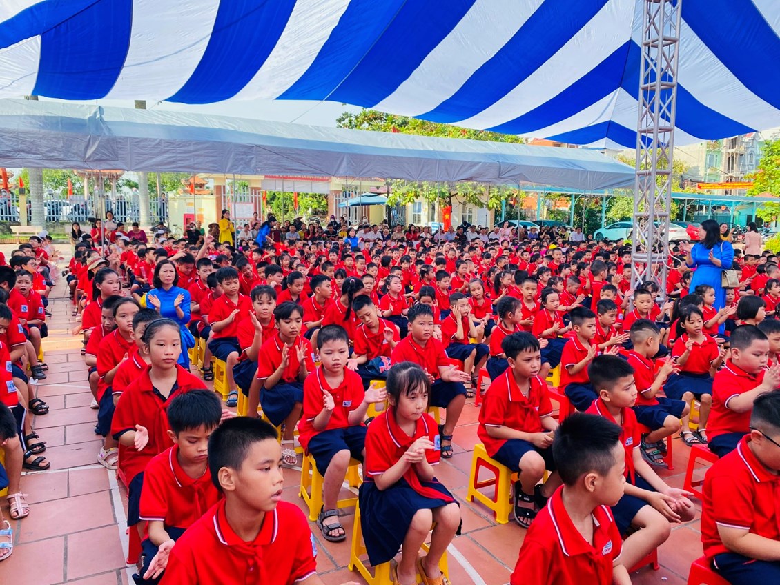 Sau lễ đón học sinh lớp Một là nghi lễ chào cờ trang nghiêm, ai nấy đều xúc động khi nghe cô Bùi Thị Thu HIền- CTCĐ nhà trường lên đọc Thư Bác Hồ gửi học sinh nhân ngày khai trường đầu tiên và Thư của Chủ tịch nước Võ Văn Thưởng gửi tặng các thầy cô giáo và các em học sinh nhân ngày khai giảng năm học.Trong giờ phút thiêng liêng, cô Nguyễn Thị Kim Oanh - Bí thư Chi bộ, Hiệu trưởng Nhà trường đánh từng hồi trống vang lên giòn giã báo hiệu năm học mới đã bắt đầu!